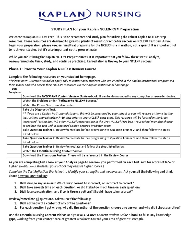 Tips from Grads on preparing for the NCLEX KAPLAN, etc.), looked through some study books and really thought about my learning styles. head phones, finger printing etc. Plan something fun for after so you have something to look forward to! ... View This Document